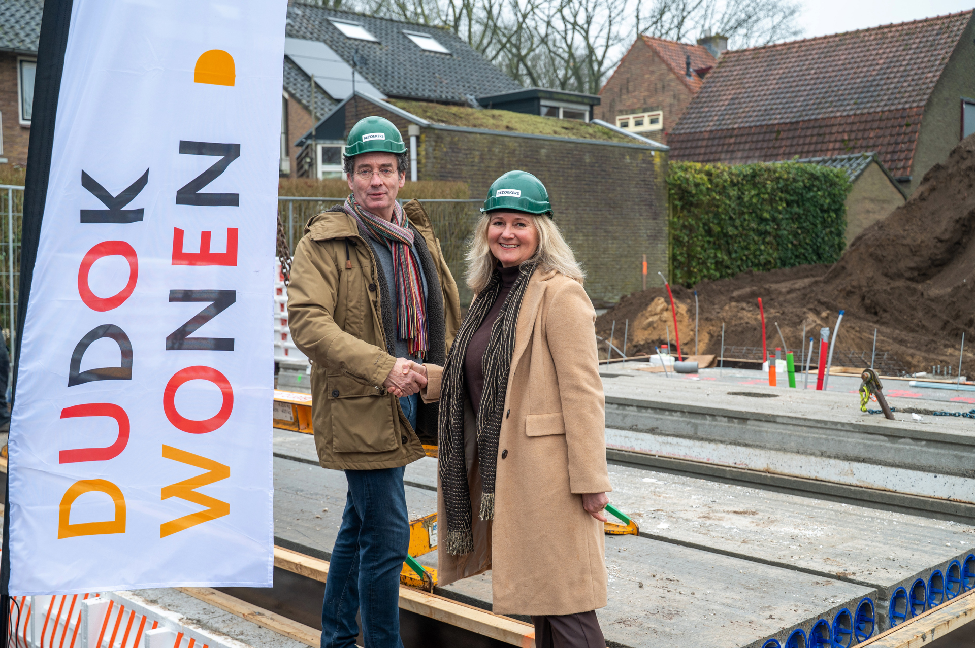 Tijdens de bijeenkomst heette Jacqueline van Ham, directeur‑bestuurder van Dudok Wonen, bewoners en relaties van harte welkom. Daarna verrichtte wethouder Roland Boom het symbolische startmoment door de bouw officieel te openen. Wethouder Boom benadrukte het belang van het project voor de gemeente: “Ook in Huizen is er grote behoefte aan woningen voor jongeren en senioren. Ik ben trots dat we op deze plek, in samenspraak met de buurt, zeventien geweldige sociale huurwoningen kunnen realiseren.”