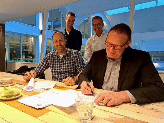 Het is zover: de omgevingsvergunning voor het middengebied Nieuw Zuid is verleend door de gemeente Hilversum. Daarmee is er groen licht voor verdere ontwikkeling. Hét moment om ook de realisatieovereenkomst te tekenen. Dat deden Robert Jan Sliep, Directeur Dudok Wonen, en Frank Hegeman, directeur Aannemingsmaatschappij Hegeman.